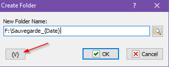 Tu trouveras la dedans une liste de variables qui s’adapterons automatiquement. Par exemple chez moi ici l’action créera un dossier Sauvegarde_02.06.2017 🙂